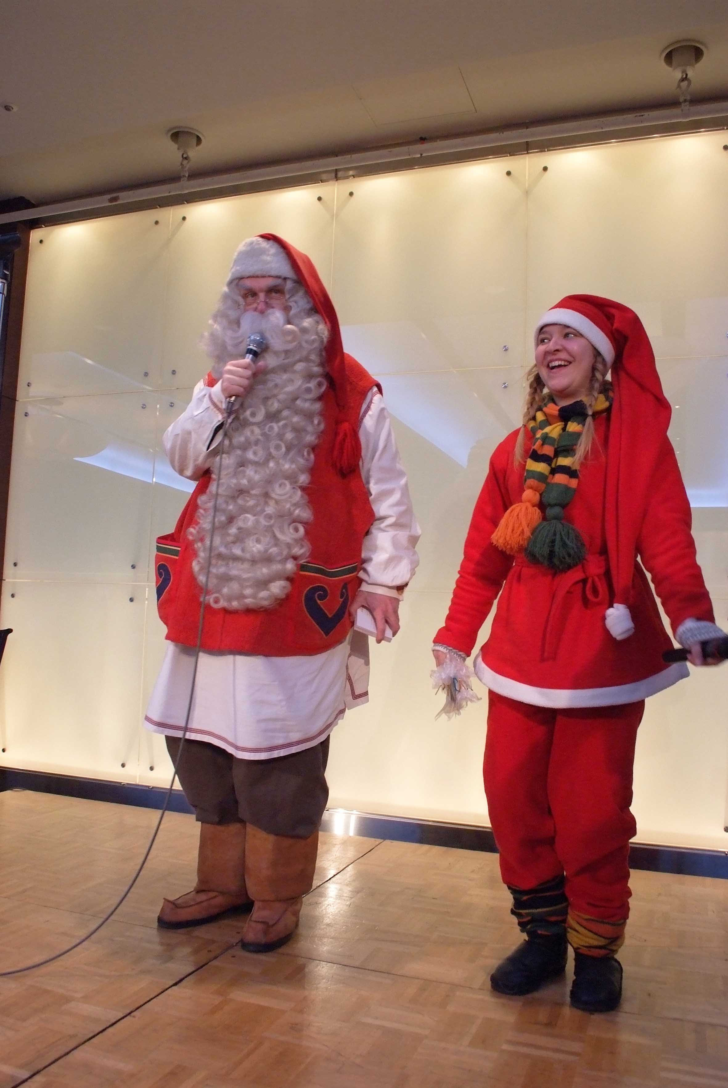 サンタさんはウッラさんの通訳を交えて、次から次と楽しいお話しをしてくれました。サンタさんへの質問では「ヒゲはいつから切っていないの?」とか、「何歳なの?」などお子さんからの素朴な質問に会場は和気あいあいでした。サンタさんとの記念撮影のあと、恒例の大抽選会は、プレゼントを全てサンタさんから渡してもらえるので