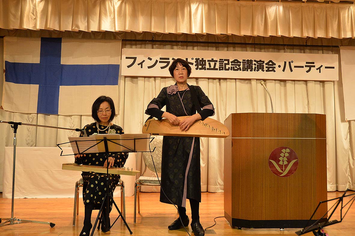 会場はKKR札幌。第1部の講演会司会を白澤常務が担当。長谷川名寄フィンランド協会会長の開会挨拶で始まり。「不屈の翼・カミカゼ葛西紀明のジャンプ人生」の筆者岡崎敏氏にご講演を頂きました。岡崎氏は普段知ることのできない葛西選手の素顔や裏話などをご紹介して頂き楽しい講演会でした。会場の皆様も面白いエピソードの興味津々のご様子。質問もたくさん頂き、安養顧問の挨拶で第1部は終了しました。第2部は、同じ会場で柴田常務・横山和美理事の司会で行われる、クリスマスを兼ねた独立記念パーティー。この中では、佐藤理事のカンテレによる「フィンランド国歌演奏」。名誉領事・横山清様の開会の挨拶。髙橋北海道国際交流センター副会長と元参議院議員中川義雄様の来賓ご挨拶。井口会長の乾杯で始まりました。料理や飲み物が運ばれパーティのスタートです。留学生のエリッキ君やカンテレあんざんぶる”みゅう”の演奏や、フィンランドからの留学生の自己紹介、スピーチタイムの後、恒例の「持ち寄りオークション」が行われ、多額の落札金額で会場は盛り上がりました。これは今後の協会の運営に役立てさせて頂きます。予定時間を大きくオーバーし協会副会長の柴田北洋銀行副頭取の乾杯で楽しかったパーティもお開きとなりました。Merry Christmas !