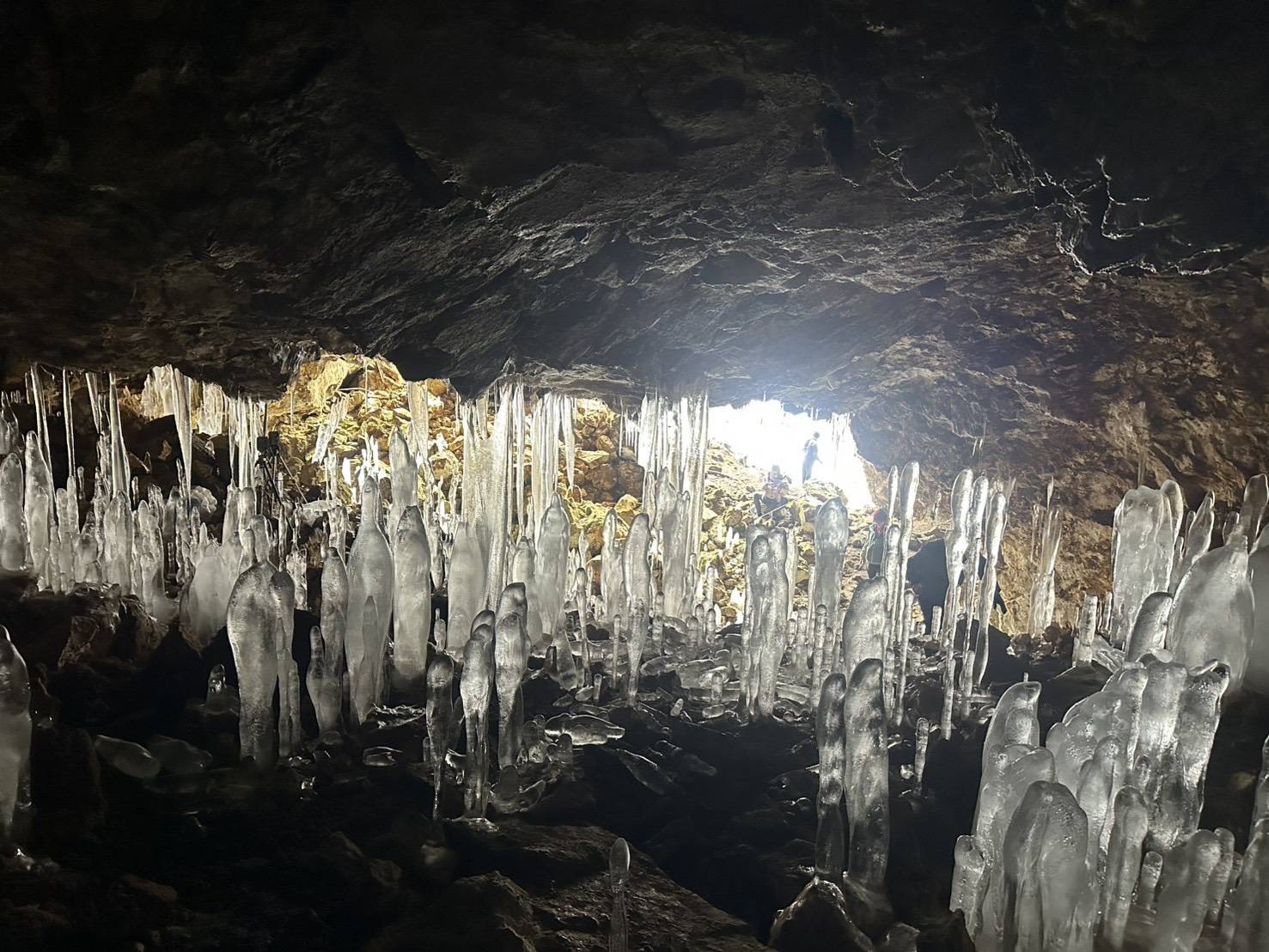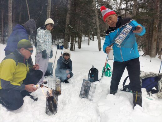 氷筍「ニョロニョロ」ツアーに参加してきました。徳舜瞥山の麓にある円山洞窟まで、スノーシューで行く3時間の特別ツアーです。スノーシューは初心者で体力にも不安のある私でしたが、ガイドの藤田さんはじめツアー参加の皆さんが優しく、和気藹々と歩いているうちに、あっという間に到着。それは、思っていた以上にニョロニョロで、ニョロニョロだとしか言いようがなく、ここまで来れて本当によかった!と思いました。歩いた後のご褒美は、直火焼きホットサンド。藤田さん考案の仕掛けに「なるほどなるほど」と感心しつつ、美味しく完食しました。