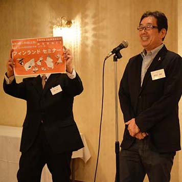 続いて、井口会長から「創立40周年記念事業:エゾヤマザクラのフィンランド移植計画」のプレゼンテーションがありました。4年後の日フィン国交100周年に、ヘルシンキの町に桜並木を作り上げ、みんなで花見に行こう!という素晴らしい計画に大いに盛り上がりました。閉会のあいさつを速水旭川フィンランド協会会長からいただき。総会は終了いたしました。