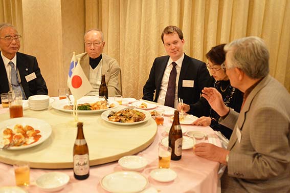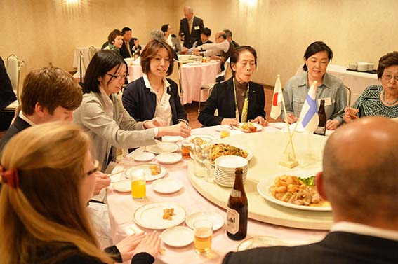 同じ会場で行われた懇親会は柴田常務理事の司会で行われました。横山在札幌フィンランド国名誉領事様からご祝辞を頂き、長谷川名寄フィンランド協会会長の乾杯で始まりました。