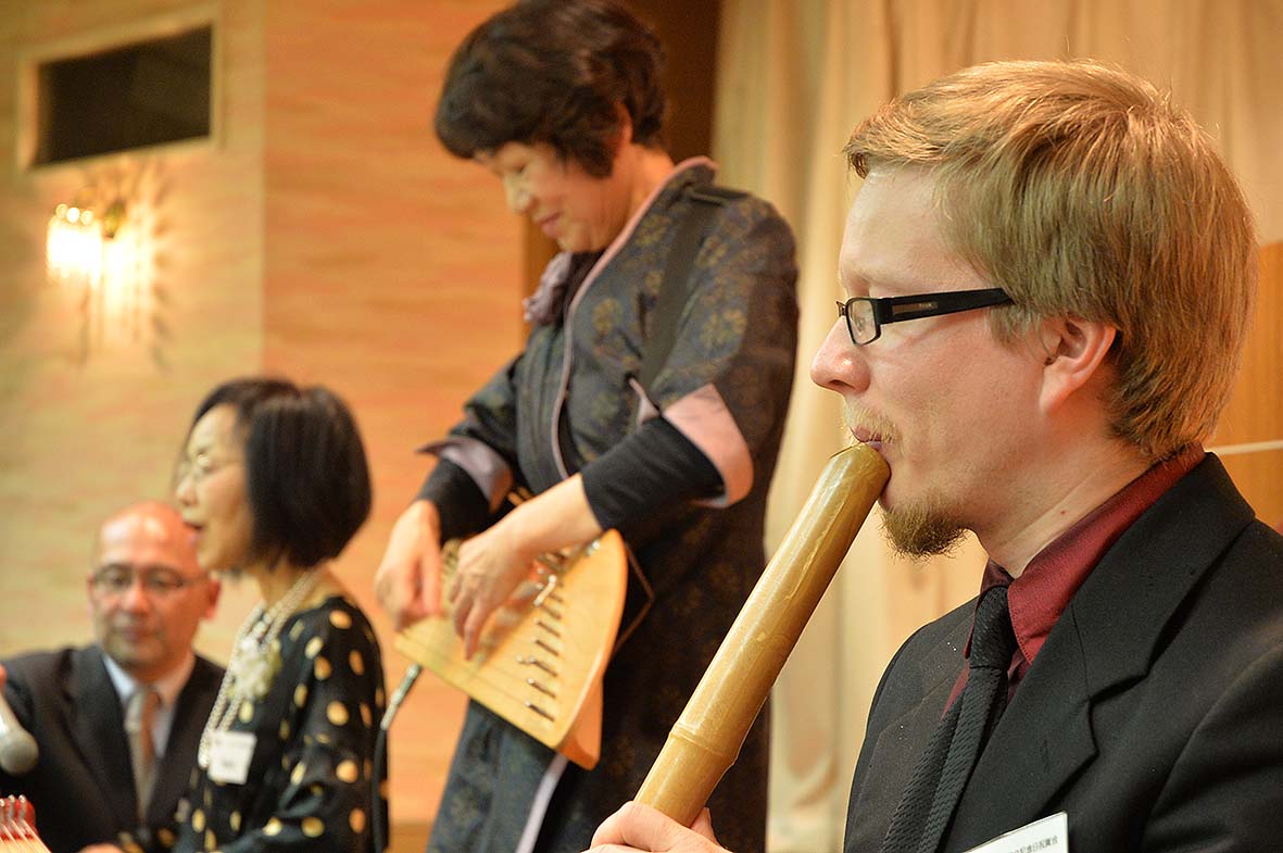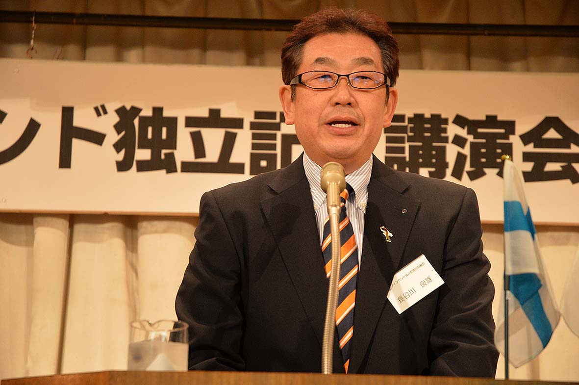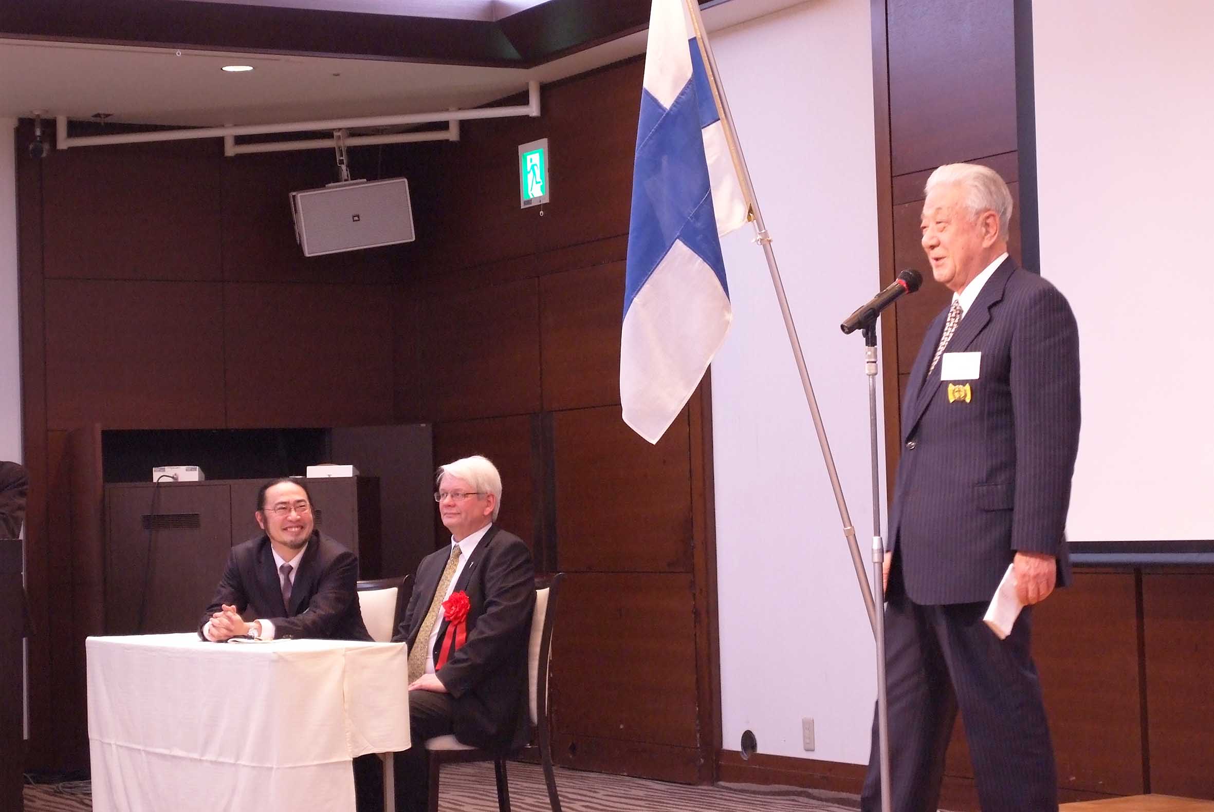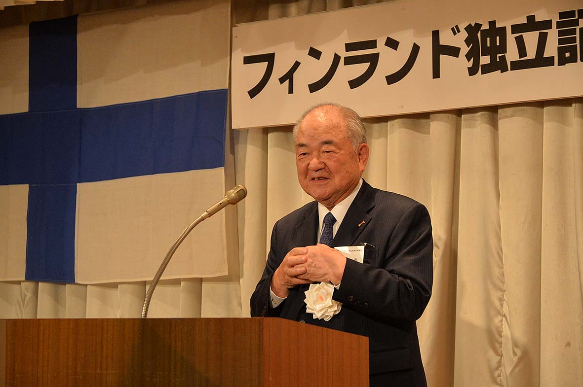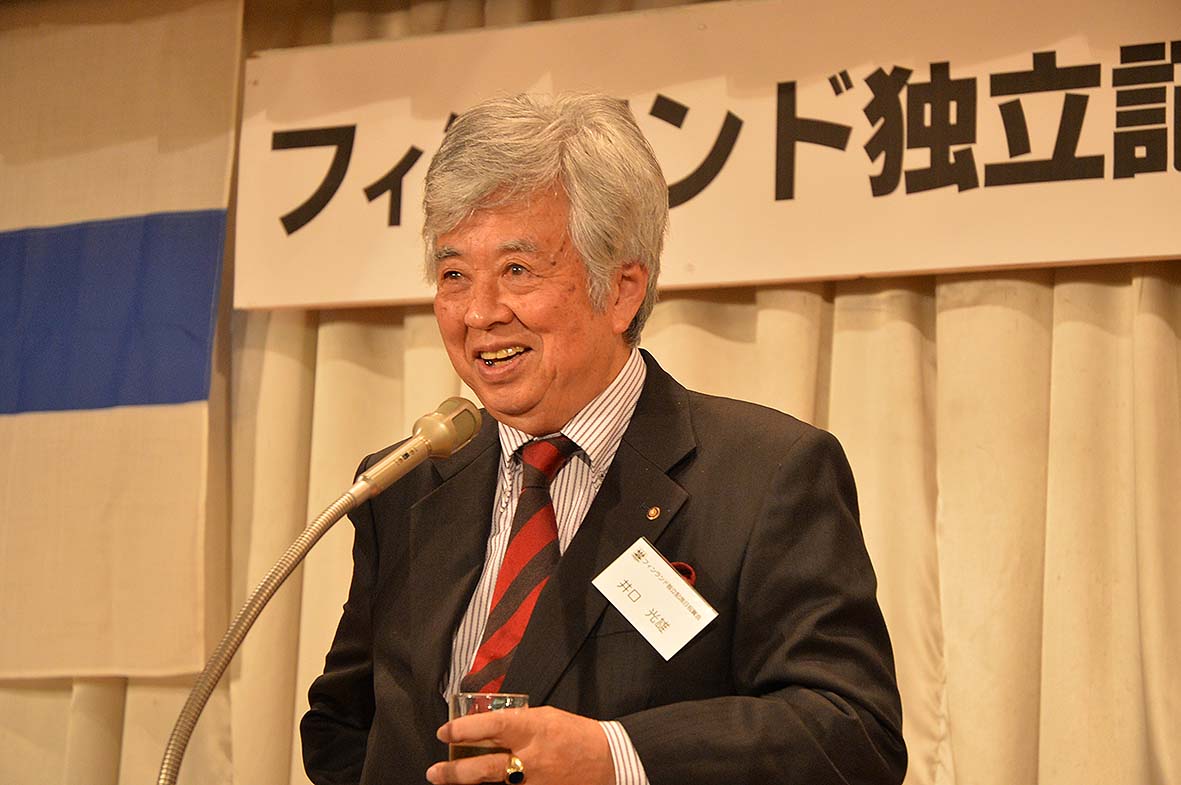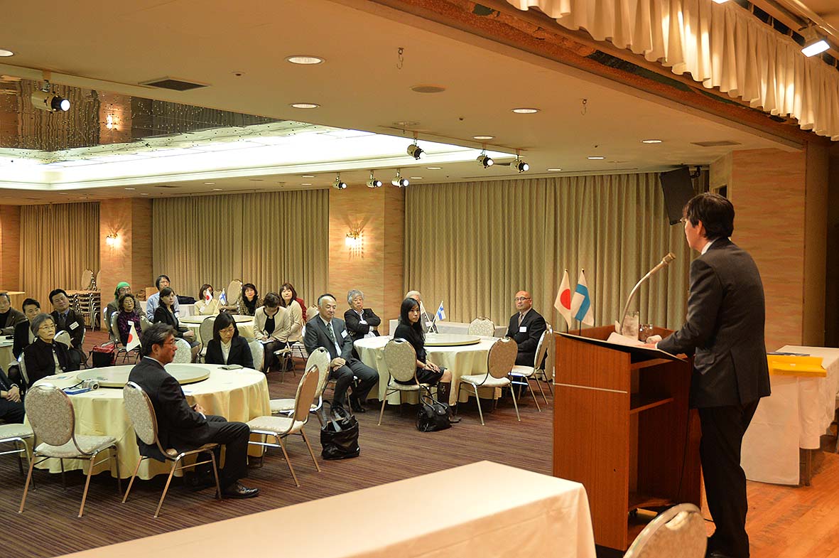 会場はKKR札幌。第1部の講演会司会を白澤常務が担当。長谷川名寄フィンランド協会会長の開会挨拶で始まり。「不屈の翼・カミカゼ葛西紀明のジャンプ人生」の筆者岡崎敏氏にご講演を頂きました。岡崎氏は普段知ることのできない葛西選手の素顔や裏話などをご紹介して頂き楽しい講演会でした。会場の皆様も面白いエピソードの興味津々のご様子。質問もたくさん頂き、安養顧問の挨拶で第1部は終了しました。第2部は、同じ会場で柴田常務・横山和美理事の司会で行われる、クリスマスを兼ねた独立記念パーティー。この中では、佐藤理事のカンテレによる「フィンランド国歌演奏」。名誉領事・横山清様の開会の挨拶。髙橋北海道国際交流センター副会長と元参議院議員中川義雄様の来賓ご挨拶。井口会長の乾杯で始まりました。料理や飲み物が運ばれパーティのスタートです。留学生のエリッキ君やカンテレあんざんぶる”みゅう”の演奏や、フィンランドからの留学生の自己紹介、スピーチタイムの後、恒例の「持ち寄りオークション」が行われ、多額の落札金額で会場は盛り上がりました。これは今後の協会の運営に役立てさせて頂きます。予定時間を大きくオーバーし協会副会長の柴田北洋銀行副頭取の乾杯で楽しかったパーティもお開きとなりました。Merry Christmas !